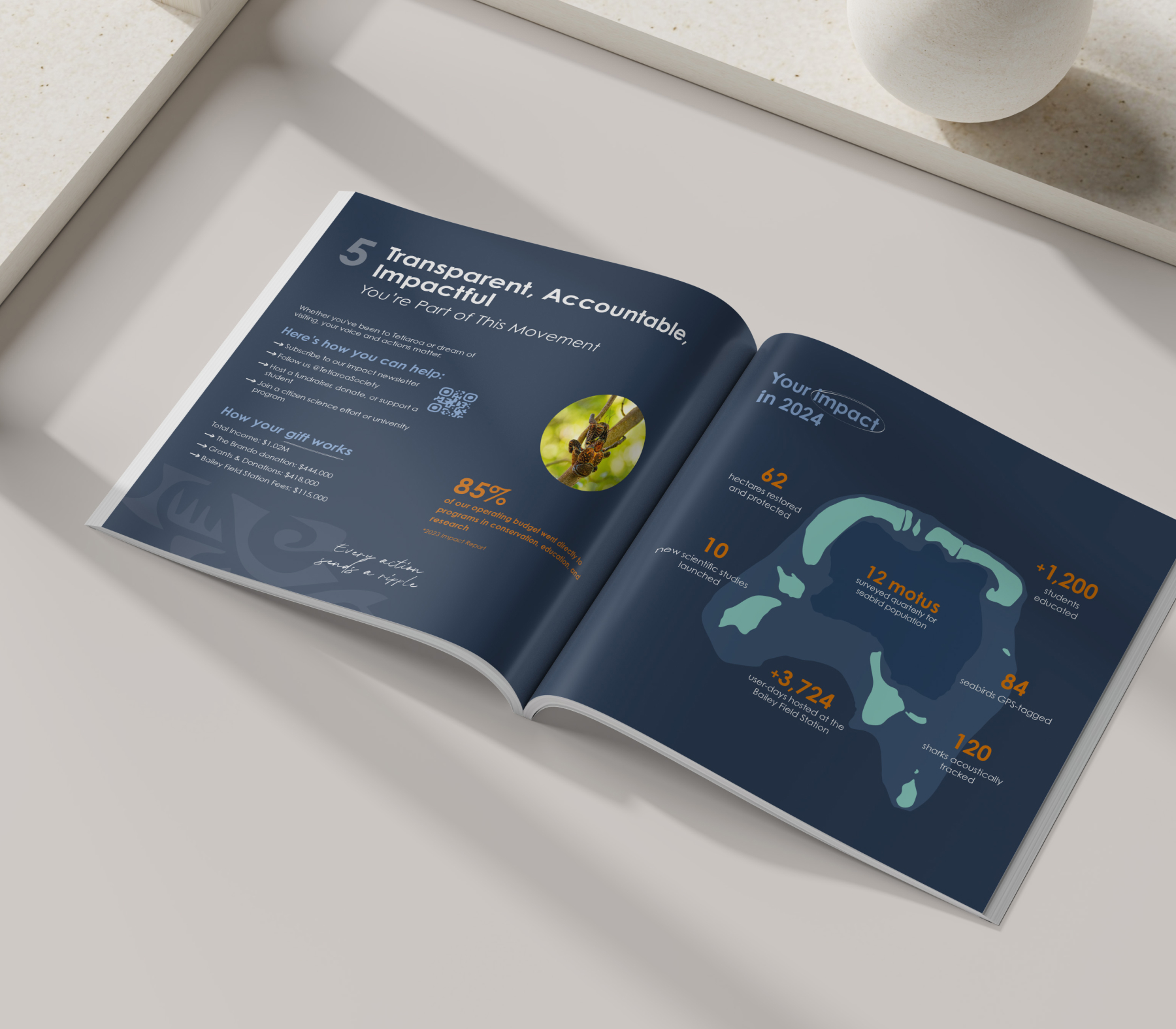 La Tetiaroa Society est une organisation dédiée à la préservation des écosystèmes insulaires et au soutien des communautés côtières. Sa mission est d’assurer à ces populations un avenir durable, en renforçant leur résilience face aux changements globaux, tout en protégeant leur environnement et leur culture.