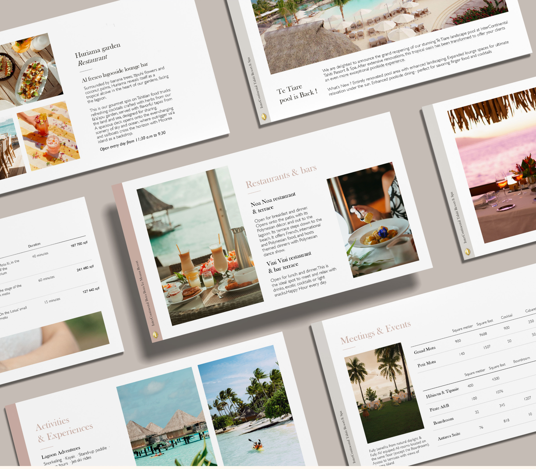 Dans le cadre d’un événement commercial, j’ai conçu une présentation PowerPoint mettant en valeur les trois établissements du groupe InterContinental Polynésie Française.