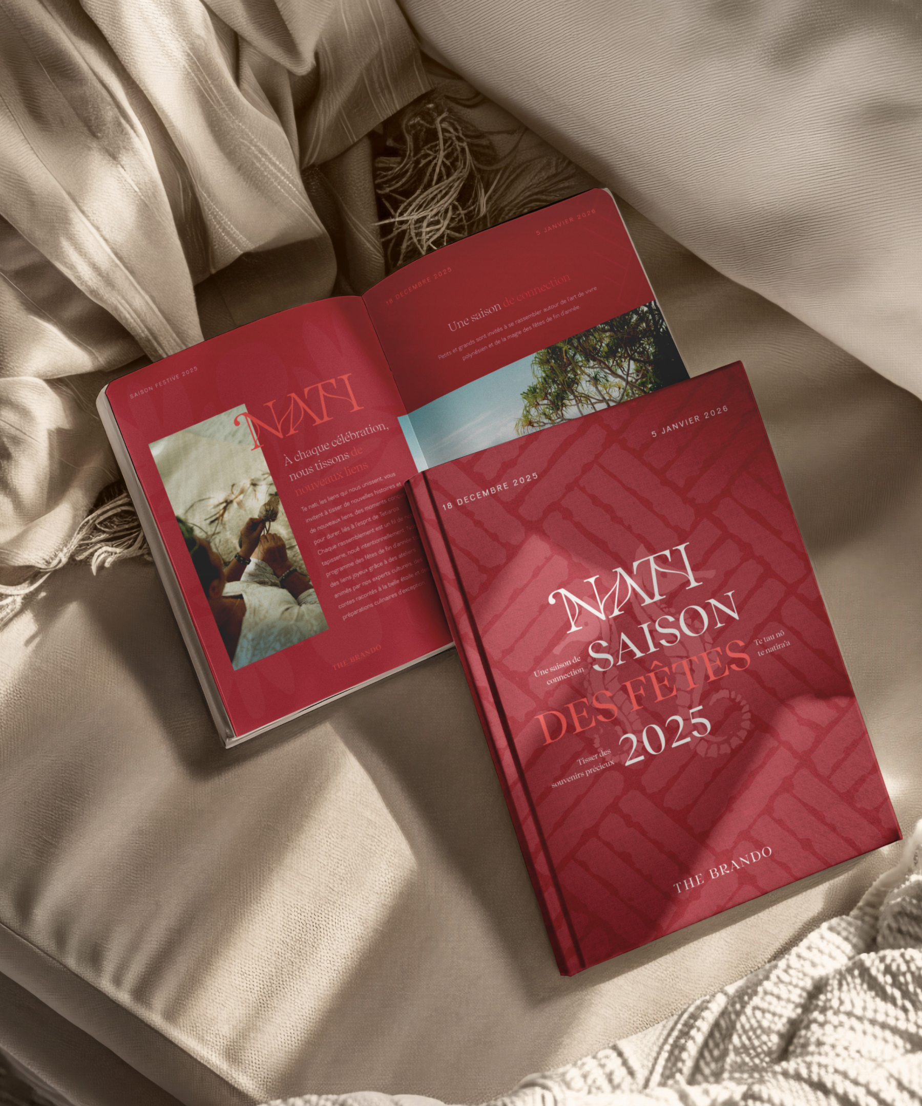 Pour accompagner cette période, nous avons conçu un programme complet réunissant toutes les activités, ainsi que divers supports de communication. Comme pour chaque événement, un univers graphique dédié a été créé, mais celui-ci a nécessité de longues concertations avec l’équipe créative pour imaginer un thème capable de transporter nos clients hors du temps.
